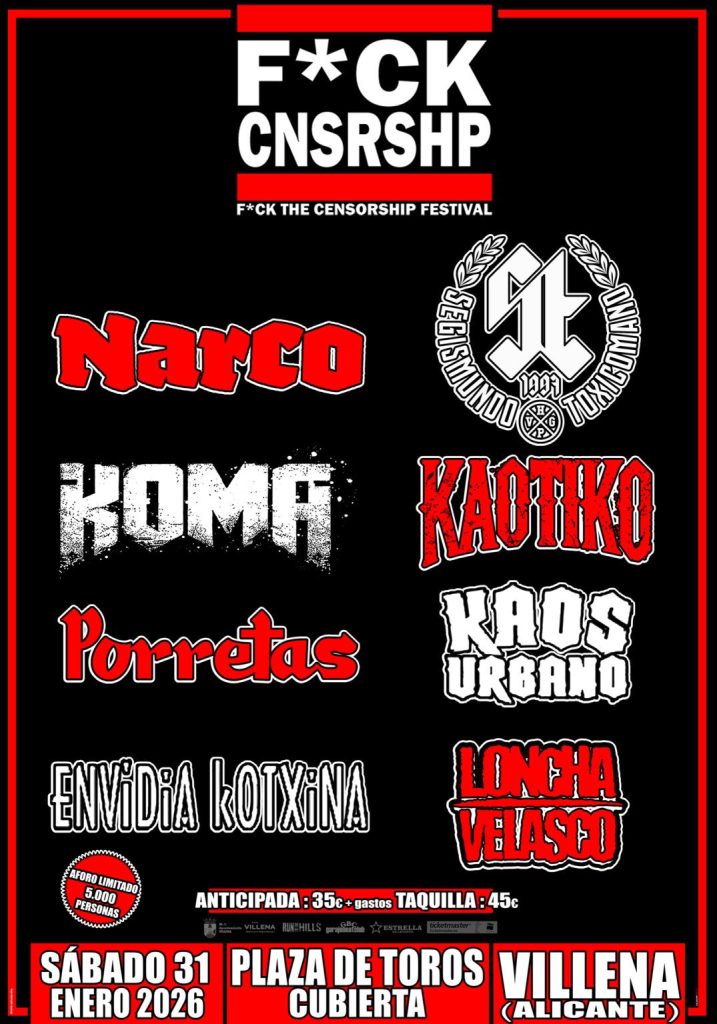 F*CK CNSRSHP FESTIVAL, January 31st in Villena, Alicante, Spain